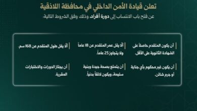 تطلق قيادة الأمن الداخلي في محافظة اللاذقية فرصة ذهبية للشباب السوري الراغبين في الانضمام إلى السلك الأمني، حيث أعلنت عن فتح باب التقديم لدورة تأهيل…